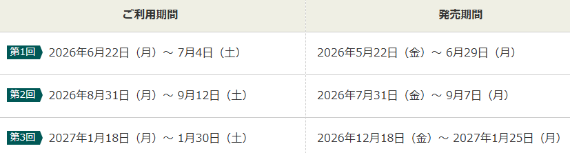 利用期間は、年間3回各2週間あり1月に次年度分のスケジュールが発表されます。さらに、2024年2025年は「大人の休日パス スペシャル」と称して利用期間1か月の設定もありました。 連続する5日間有効であるため、週末を挟んだ期間で購入しますが、2週間あっても1回しか週末を挟んでいません。
