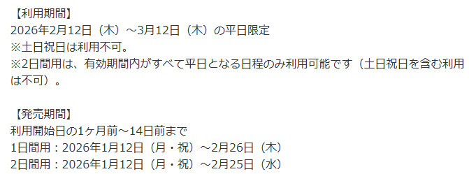 - 2025年2月13日(木)〜 3月13日(木)の平日限定