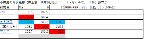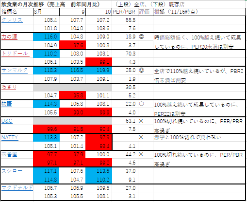 - 飲食業や小売業は毎月売上高の前年同月比をHPで公表しています。保有している株の売上高の推移が悪くないことを確認しています。